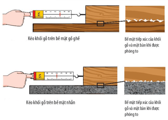 Giá trị đo được của lực kế trong hai trường hợp trên khác nhau: trường hợp a lực kế chỉ 3 N, trường hợp b lực kế chỉ 2 N. Vì tính chất của bề mặt sàn mà khối gỗ tiếp xúc khác nhau nên đã tạo ra lực ma sát khác nhau.