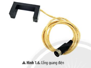 + Cổng quang điện (mắt thần): Một thiết bị cảm biến gồm hai bộ phận phát và thu tia hồng ngoại. Khi nối cổng quang với đồng hồ hiện số, tùy theo cách chọn chế độ của đồng hồ mà tín hiệu này sẽ điều khiển đồng hồ bắt đầu đo hoặc dừng đo.