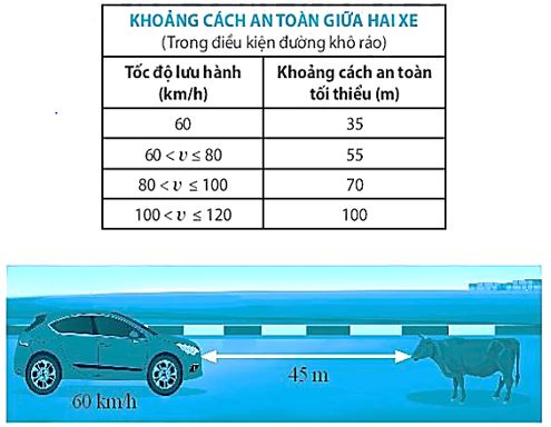 - Ô tô đang chạy với tốc độ 60 km/h, do đó khoảng cách an toàn phải từ 35 m trở lên (theo Luật Giao thông đường bộ Việt Nam).
