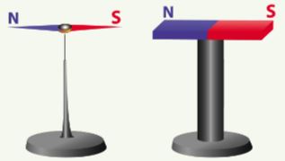 + Một kim nam châm có thể quay tự do quanh trục thẳng đứng trên giá đỡ, đang chỉ hướng nam bắc.