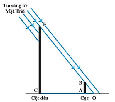 Bài 2: Một học sinh xác định độ cao của cột điện vào một ngày trời nắng. Học sinh này lần lượt đo chiều dài bóng đổ của một cái cọc cắm thẳng đứng có độ cao là 1 m và bóng của cột điện trên mặt đất. Kết quả đo chiều dài bóng của cọc và bóng cột điện lần lượt là 0,6 m và 4,5 m. Trình bày cách xác định độ cao của cột điện trong thí nghiệm nói trên của học sinh. Biết rằng các tia sáng từ Mặt Trời chiếu tới mặt đất được coi là chùm sáng song song.
