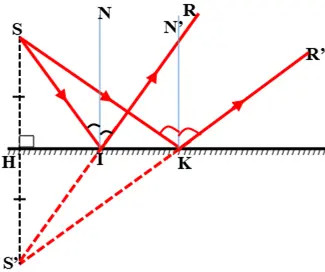 + Kéo dài hai tia phản xạ IR và KR’ gặp nhau ở đúng điểm S’ mà ta đã vẽ trong cách a.