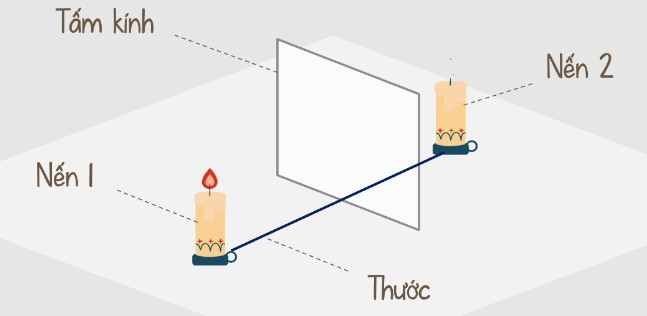 + Đặt cây nến 1 trước tấm kính và thắp sáng