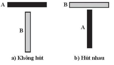 - Trong trường hợp a, phần giữa của nam châm không có từ tính nên hai thanh không hút nhau.