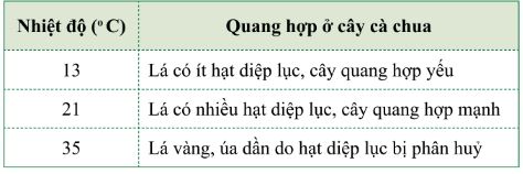 Bảng 19.3. Ảnh hưởng của nhiệt độ đến quang hợp ở cây cà chua