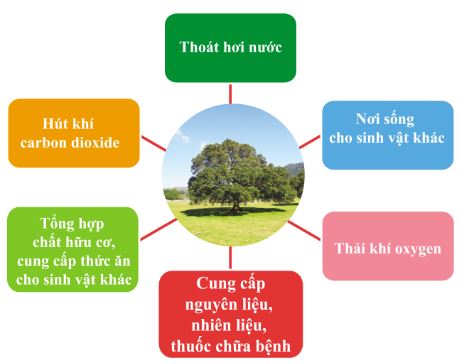 - Trồng và bảo vệ cây xanh mang lại cho chúng ta nhiều lợi ích: cung cấp oxygen, thức ăn cho con người và động vật, hấp thu khí carbon dioxide góp phần làm giảm hiệu ứng nhà kính, hạn chế tăng nhiệt độ Trái Đất, hạn chế biến đổi khí hậu, làm sạch không khí,...