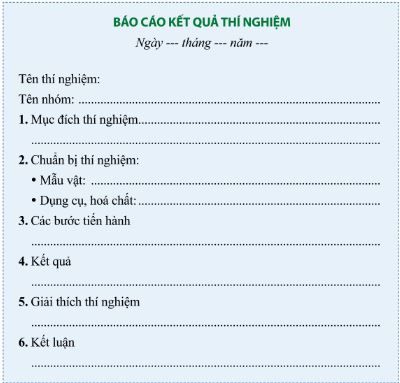 Báo cáo kết quả theo mẫu phiếu báo cáo thí nghiệm.