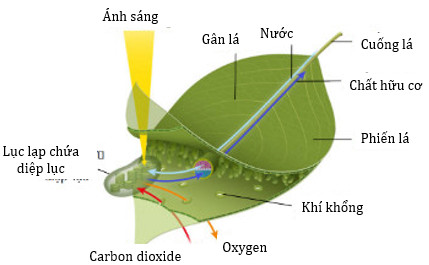 | Lá cây là cơ quan chủ yếu thực hiện chức năng quang hợp. Bên trong lá có nhiều lục lạp, có khả năng hấp thu và biến đổi năng lượng ánh sáng. |