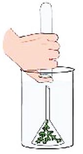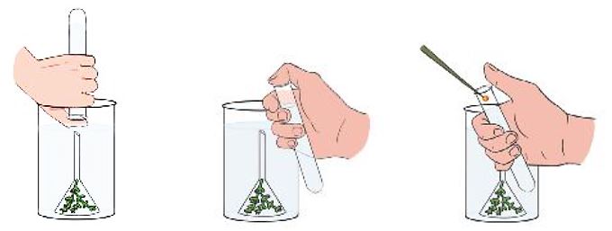 - Bước 4: Tắt bếp, dùng panh gắp lá và cho vào ống nghiệm có chứa cồn 90°, đun cách thuỷ trong vài phút (hoặc cho đến khi thấy lá mất màu xanh lục) (Hình 24.2b).