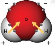 + Nguyên tử oxygen có khả năng hút electron mạnh hơn nên các electron dùng chung trong liên kết cộng hóa trị có xu hướng bị lệch về phía oxygen, dẫn đến đầu oxygen của phân tử nước tích điện âm một phần, còn đầu hydrogen tích điện dương một phần (tạo nên tính chất phân cực của phân tử nước).
