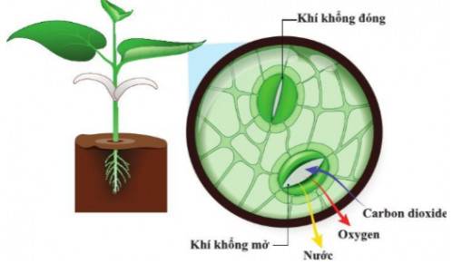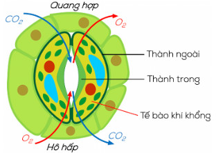 - Trong quá trình quang hợp, khí khổng mở cho CO2 từ môi trường khuếch tán vào lá và O2 từ lá khuếch tán ra môi trường.