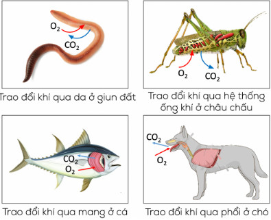 Hình 28.2. Cơ quan trao đổi khí ở một số động vật