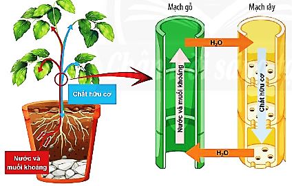 b. Quá trình vận chuyển các chất trong mạch gỗ và mạch rây
