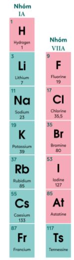 Hình 3.6. Nhóm IA và VIIA trong bảng tuần hoàn