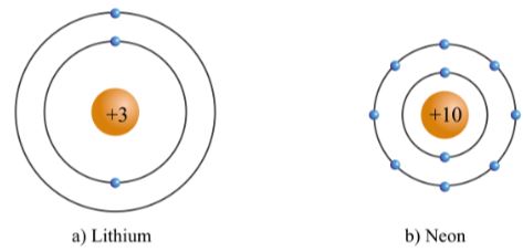 Hình 3.3. Mô hình cấu tạo nguyên tử lithium và neon