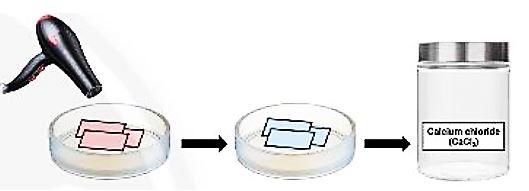 + Sấy các mảnh giấy thấm bằng máy sấy đến lúc khô, lúc này giấy sẽ chuyển màu xanh da trời. Sau đó cho các mảnh giấy này vào lọ CaCl2 (Hình 31.5).