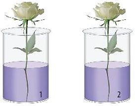 - Bước 2: Cắm vào mỗi gốc dung dịch màu 1-2 cánh hoa (đã được cắt chéo, ngắn khoảng 10 - 15 cm). Để hai cốc vào chỗ thoáng khoảng 60 – 90 phút.