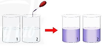 - Bước 1: Cho nước vào hai cốc thủy tinh có đánh số 1 và 2. Sau đó, cho màu thực phẩm (hay mực viết) vào cả hai cốc, khuấy đều để tạo thành dung dịch màu.