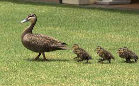 Phản ứng của vịt con đi theo vịt mẹ sau khi nở |