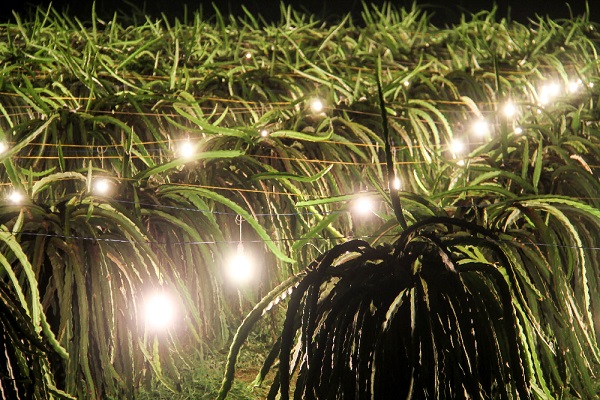 Thắp đèn vào ban đêm cho cây thanh long ra nhiều hoa hoặc ra hoa trái vụ.