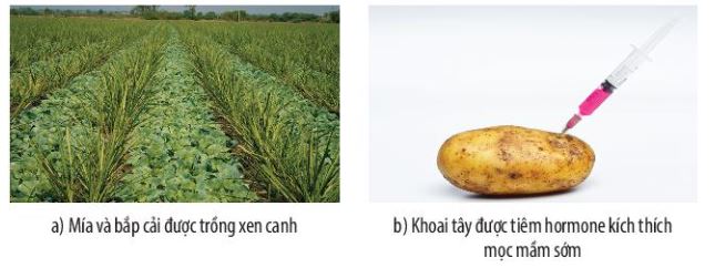 + Để điều hòa sinh trưởng và phát triển của cây trồng, người ta có thể các chất kích thích như hormone sinh trưởng, ... hoặc điều khiển các yếu tố môi trường để tận dụng nguồn ánh sáng nguồn dinh dưỡng, nhiệt độ, độ ẩm cho phù hợp với đặc tính sinh trưởng và phát triển của mỗi loài cây trồng khác nhau.