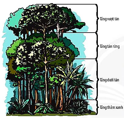 Hình 35.2. Sơ đồ sự phân tầng của thực vật ở rừng mưa nhiệt đới