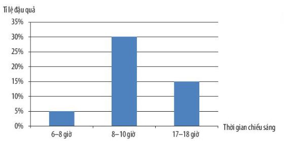 Hình 38.3. Ảnh hưởng của thời gian chiếu sáng trong ngày đến tỉ lệ đậu quả của cây cà chua