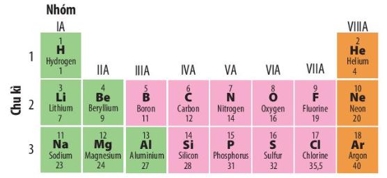 Hình 4.4. Các chu kì nhỏ trong bảng tuần hoàn các nguyên tố hóa học