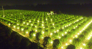 Thắp đèn sáng để kích thích thanh long ra hoa trái vụ