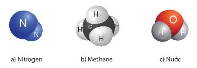 Ví dụ: Phân tử hợp chất methane gồm một nguyên tử carbon liên kết với bốn nguyên tử hydrogen (Hình 5.3b); phân tử nước gồm một nguyên tử oxygen liên kết với hai nguyên tử hydrogen (Hình 5.3c).