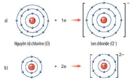 Hình 6.3. Sơ đồ tạo thành ion âm của chlorine (a) và oxygen (b)