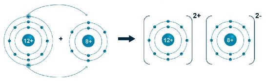 - Khi nguyên tử kim loại kết hợp với nguyên tử phi kim, nguyên tử kim loại nhường electron tạo thành ion dương, đồng thời nguyên tử phi kim nhận electron tạo thành ion âm.