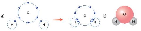 Hình 6.8. a) Sơ đồ tạo thành liên kết cộng hóa trị trong phân tử nước