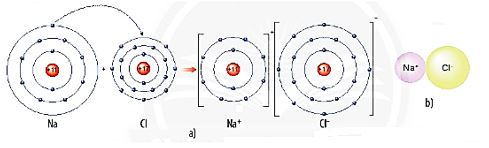 Hình 6.4. a) Sơ đồ tạo thành liên kết ion trong phân tử sodium chloride.