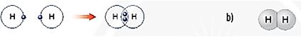 Hình 6.6. a) Sơ đồ tạo thành liên kết cộng hóa trị trong phân tử hydrogen