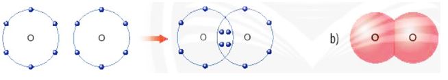 Hình 6.7. a) Sơ đồ tạo thành liên kết cộng hóa trị trong phân tử oxygen