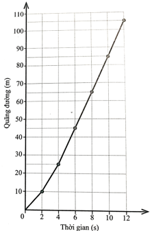 - Ta thấy từ lúc bắt đầu chuyển động đến giây thứ 2 thì vận động viên đang chuyển động thẳng đều và đi được 10 m nên trong 1 s đầu tiên, vận động viên đã đi được quãng đường dài 5 m.