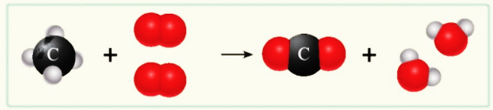 Sơ đồ mô tả phản ứng đốt cháy khí methane trong không khí thu được carbon dioxide và nước