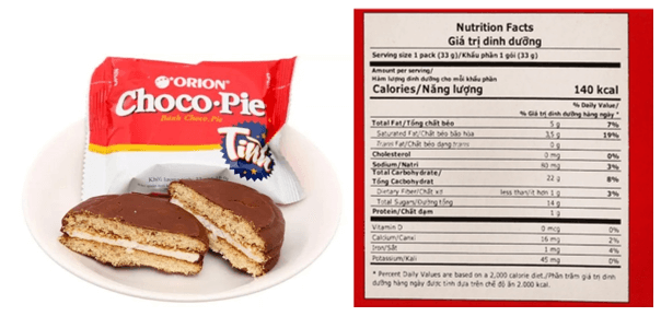 Bảng thông tin dinh dưỡng của một chiếc bánh chocopie