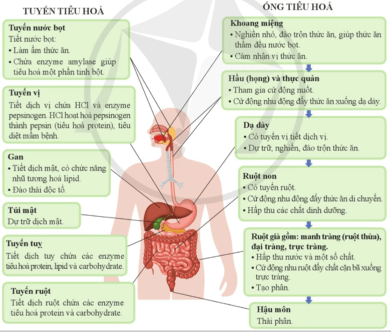 Sơ đồ cấu tạo và chức năng của các cơ quan trong hệ tiêu hóa ở người