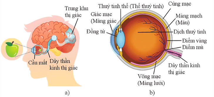Cấu tạo cơ quan thị giác (a), cấu tạo cầu mắt (b)