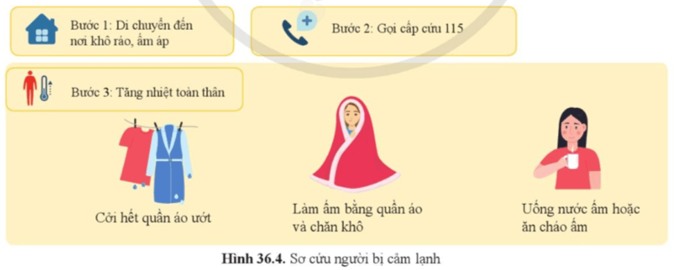 - Các biện pháp sơ cứu cho người bị cảm lạnh giúp giảm quá trình tỏa nhiệt và tăng quá trình sinh nhiệt.