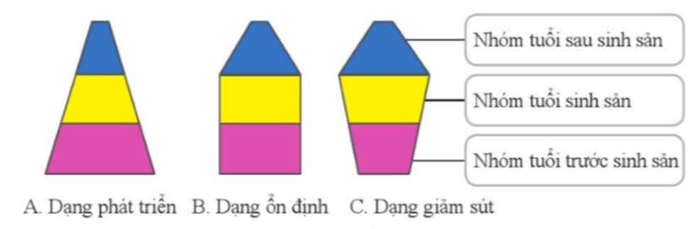 - Quần thể sinh vật gồm nhiều nhóm tuổi: nhóm tuổi trước sinh sản, nhóm tuổi sinh sản và nhóm tuổi sau sinh sản.