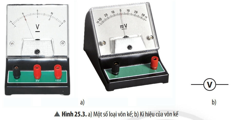 - Vôn kế (voltmeter) là dụng cụ để đo hiệu điện thế.