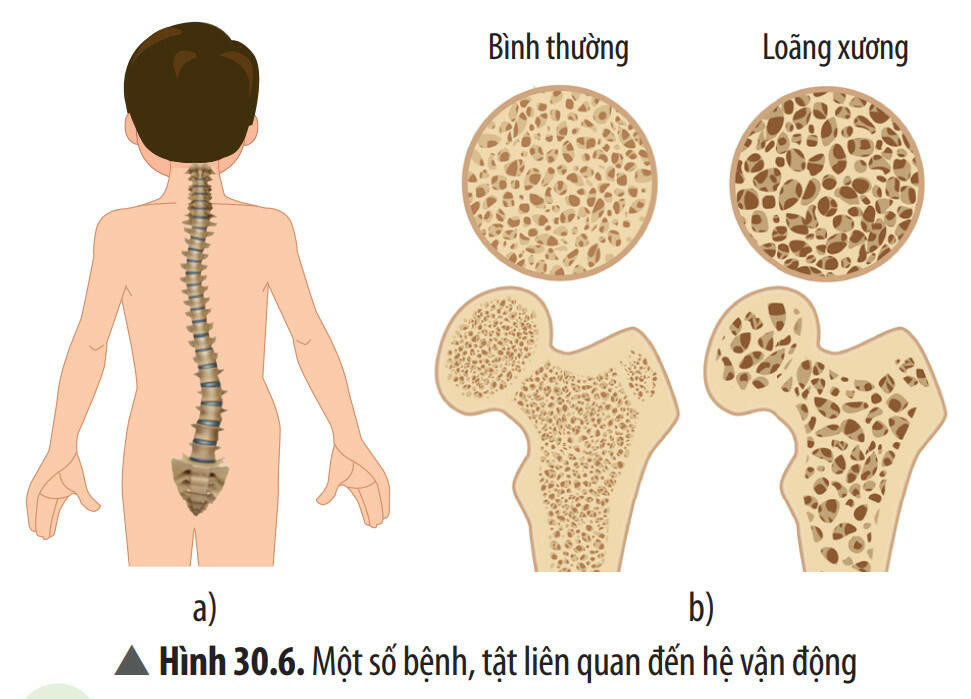 - Một số bệnh, tật liên quan đến hệ vận động như: bệnh loãng xương, tật vẹo cột sống, ...