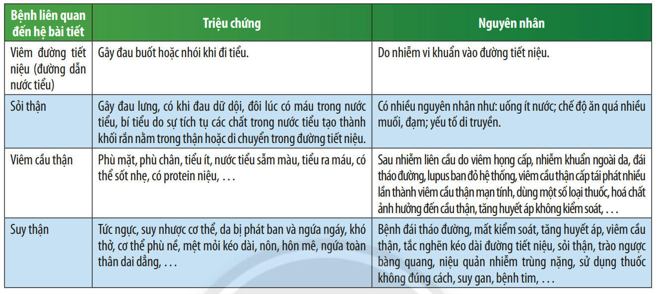 - Có nhiều bệnh về hệ bài tiết nước tiểu như viêm đường tiết niệu, sỏi thận, viêm cầu thận, suy thận,...