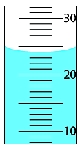 Chú ý cách đọc thể tích chất lỏng: Đặt tầm mắt ngang bằng với phần đáy lõm của dung dịch và dóng đến vạch chỉ số.