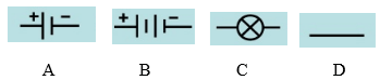 Câu 1: Nguồn điện được kí hiệu bằng kí hiệu nào sau đây:
