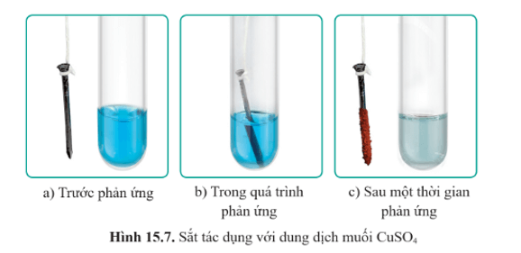Fe đẩy được Cu ra khỏi dung dịch muối CuSO4. Ta nói Fe hoạt động hoá học mạnh hơn Cu.