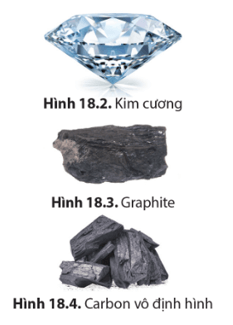 Kim cương, graphite (than chì) và carbon vô định hình là ba dạng tồn tại phổ biến của đơn chất carbon. - Kim cương cứng trong suốt, không dẫn điện. - Than chì mềm, màu xám đen, dẫn điện. - Carbon vô định hình (than hoạt tính, than gỗ, bồ hóng,...) xốp, màu đen. |